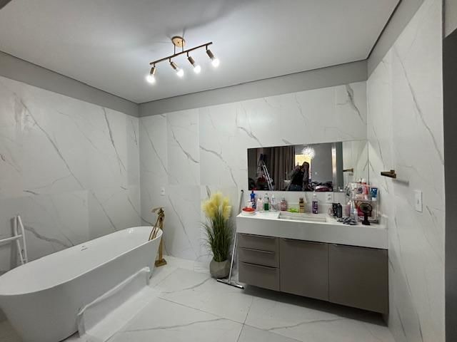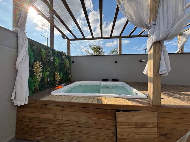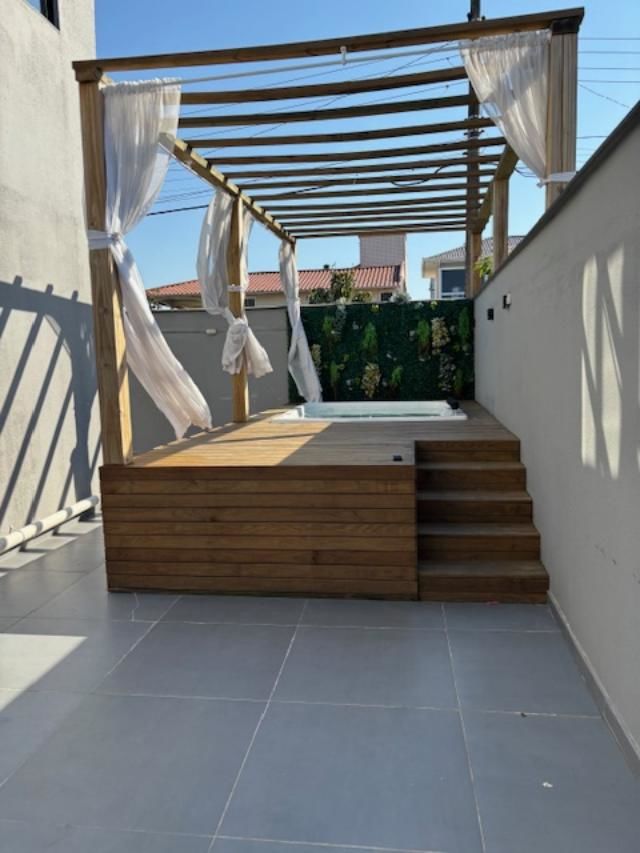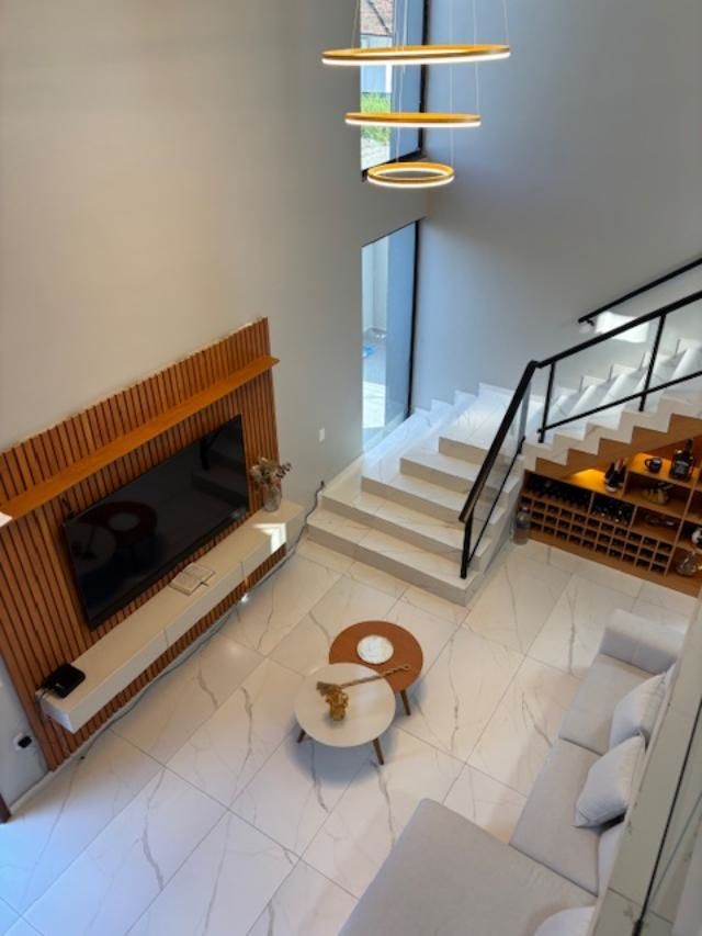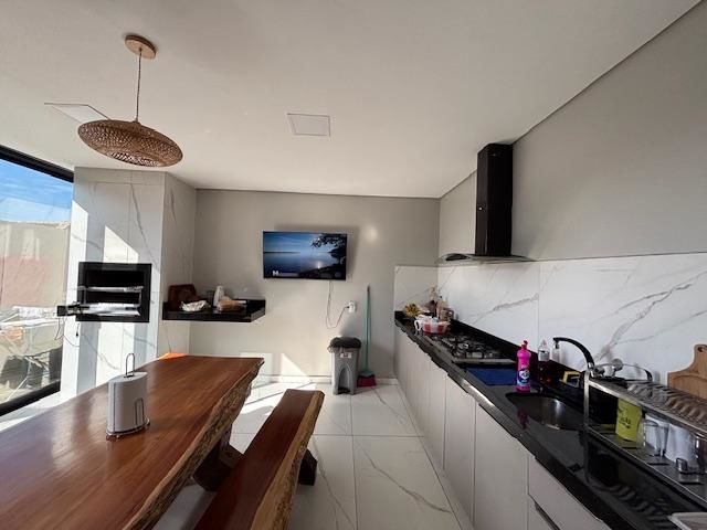 Casa de alto padrão construtivo, construída a 1 ano, com 4 suítes sendo uma suíte master com banheira, closet e sacada, living com pé direito duplo, cozinha integrada com ilha, área gourmet com churrasqueira, pergolado e deck com hidromassagem. lavabo,. lavanderia e garagem coberta para 2 automóveis.