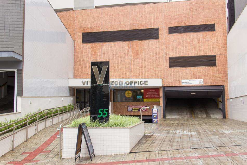 Sala com 37,15 m², 01 banheiro e 01 vaga de garagem, situada no Ed. Vitoria Eco Office. Sala com boa iluminação, arejada, piso em porcelanato claro.